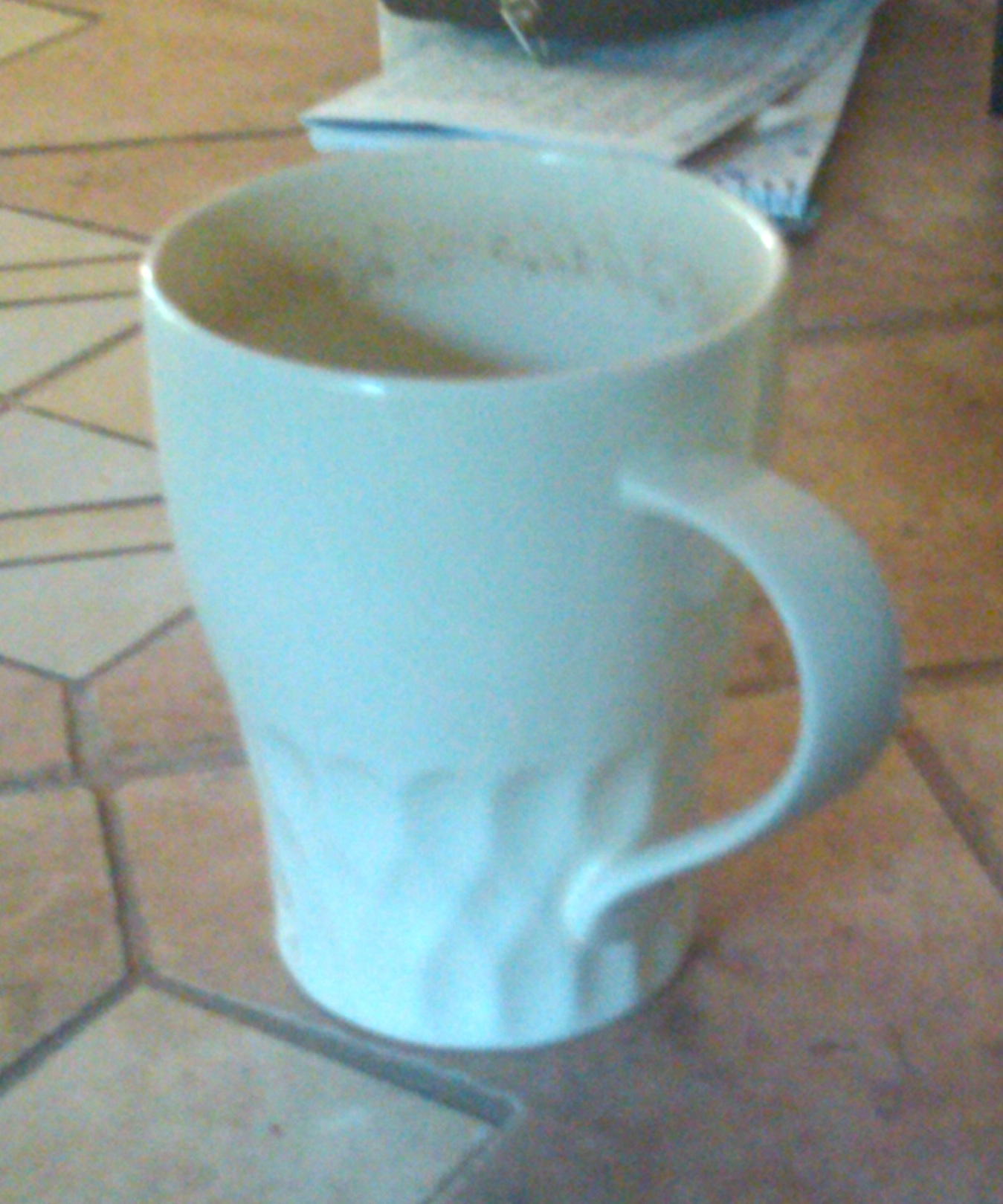 So I decided I’d dump it in a Starbucks mug (I have several never used at home- from when my sister worked there).