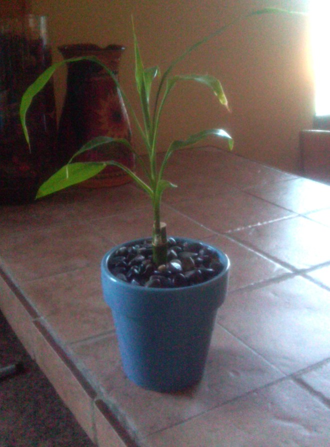 SO. I got a one of those “good-luck- money-tree- asian-bamboo” plants back in Fall ’09 for a close friend’s parents’ wedding. I decided I’d nurture it, and watch it grow- and hope it’d being me luck and money and whatever.
