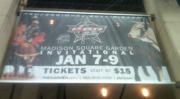 After searching HI and LOW for a friend to bring along, Ms. Andrea Coleman from Alabama RSVP’d yes to my pleas, and so I bought us $25 tickets (each) to the first night of the Ford’s “BUILT TOUGH” Professional Bull Rider Invitational, or, as I now know it … the house of TEAM PBR for the weekend at MSG.