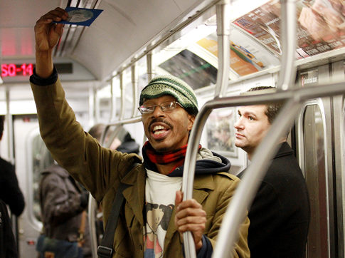 hey….thanks for the nice words…..i really hope you enjoyed the DVD…promoting and selling on the trains has been wonderful for my work; and i love actually meeting people and hearing their encouragement and seeing their faith in their fellow man….many wonderful things have opened up for me and Puddin before and after The Daily News article….including a recent development deal with one of the Big 3 networks (will let it be a surprise )….again, many thanks…!!!