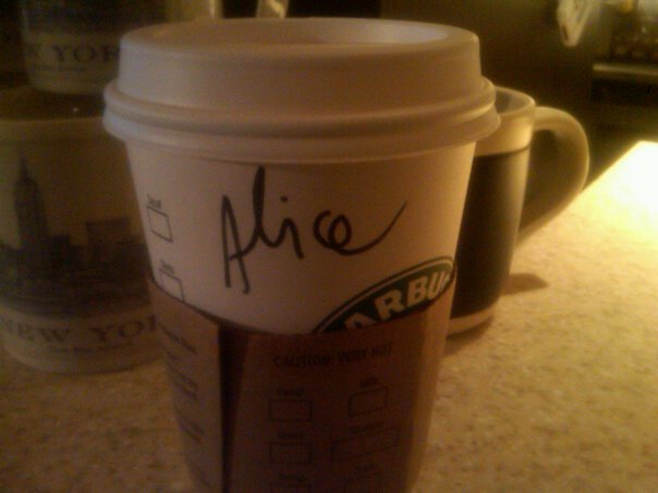 LOL. Just another misinterpreted “Alex” morning :)! Thanks Starbucks! Tomorrow I will test the waters and tell them my name is Alexandra…see what they’ll write! This is such an amazing game!