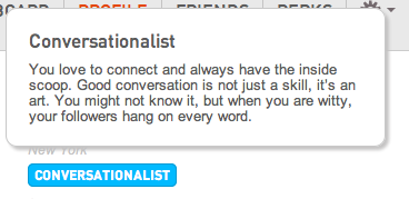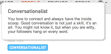 – A Klout score of 51, dubbing me a “Conversationalist”.