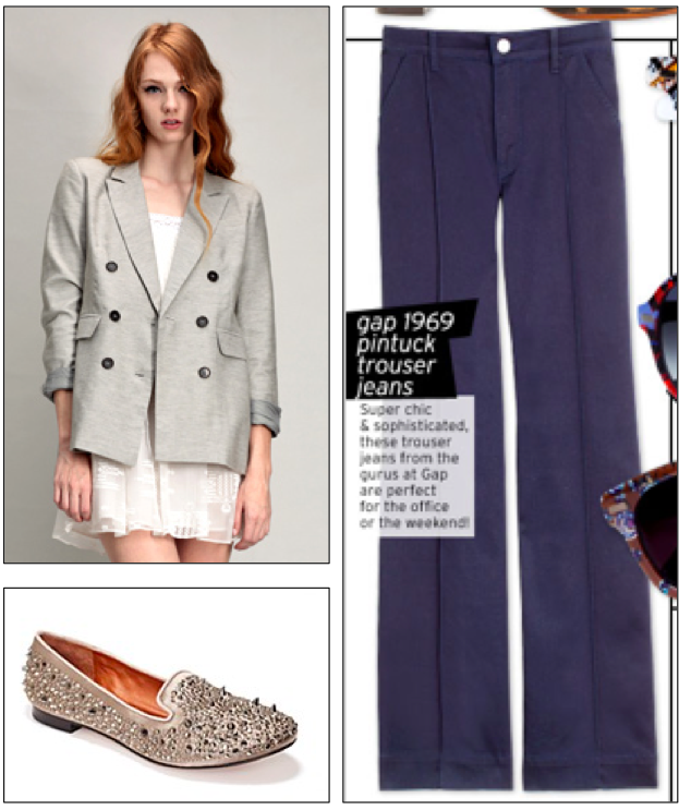 Classic Gap Jeans: Not the biggest fan of the wide leg, but LOVE the high-waist and center pintuck. Make-my-legs-look-longer certified and by the looks of the description on Gap they are light weight (breathe of fresh air!)… last pair of wide legged trousers I bought were of the thickest worst denim ever.