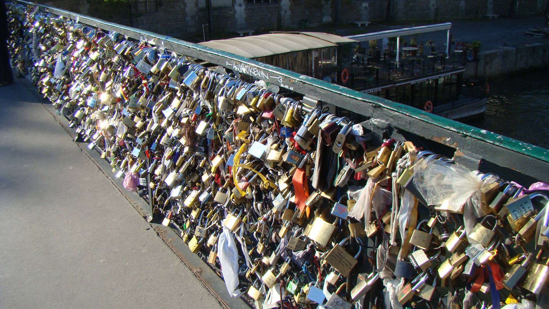 – Make your way back down towards the Seine to the Notre Dame by crossing the Pont de l’Archevêché, the narrowest bridge in Paris and the love bridge. Lovers write their names on the locks, hook to the bridge, and throw the key in the Seine. There are several bridges like this around the world– usually the oldest or most notable bridge in the city. Hooking your love on the bridge symbolizes that your love too can withstand time.