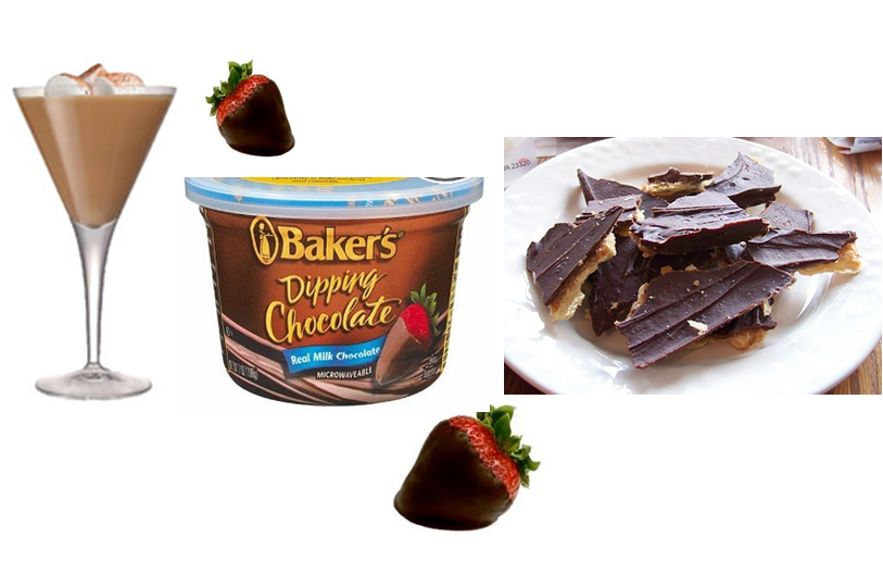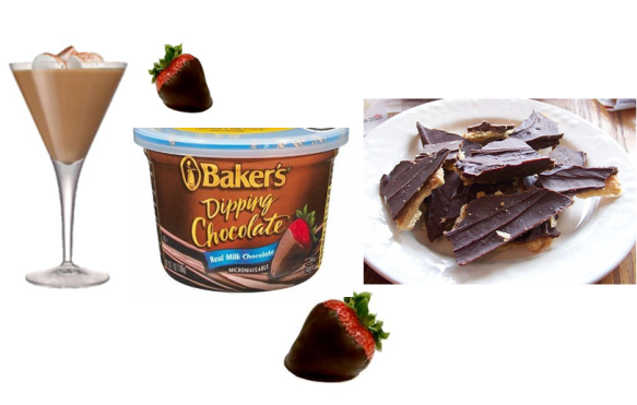 In drinks/dessert news, my Whipped Cream/Chocolate Dark n’ Fluffy (recommended by a co- worker,) was a hit. We drank it out of mugs, just because it looked like hot chocolate, and went without the marshmallows because the Whipped Cream Smirnoff is already so sweet. As per dessert, my sister picked up Baker’s Dipping chocolate for Chocolate Covered Strawberries, and I got the recipe from @lcheck for Christmas Bark, aka Christmas CRACK– like, actually. Sooooo easy to make! Check out the recipe below.