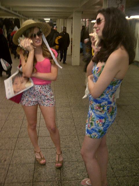 It was funny because as I was coming through Grand Central I saw a random girl in a skirt and flip-flops walking around… and had no idea WHY. I didn’t even make the connection when I got to the shuttle tracks because I didn’t take the skinned shuttle. I put 2-and-2 together when I saw (and tweeted) these 2 girls on the Times Square side of shuttle: