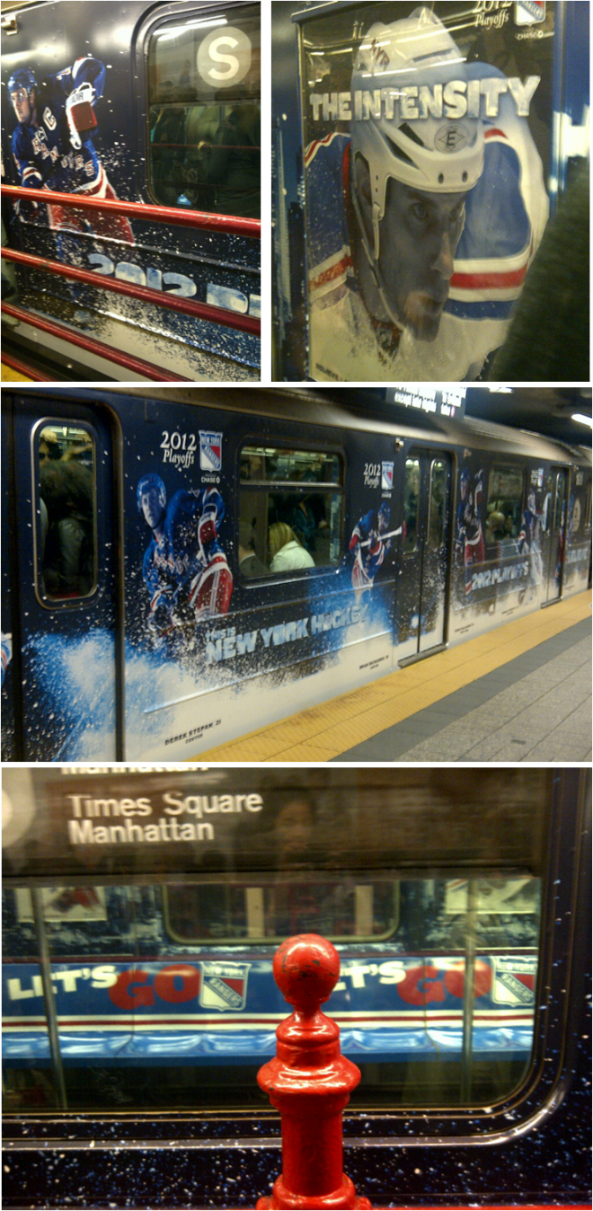 Icy blue featuring NYR players’ names and (what looks like) life-size photos of players in action, the NYR organization is promoting and initiating the #NYR #NHLPlayoffs conversation.