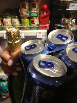 A quick check-out of a bottle of bubbly, 4 packs of Foster’s and Peanuts, lead us straight through to the highly guarded entrances.