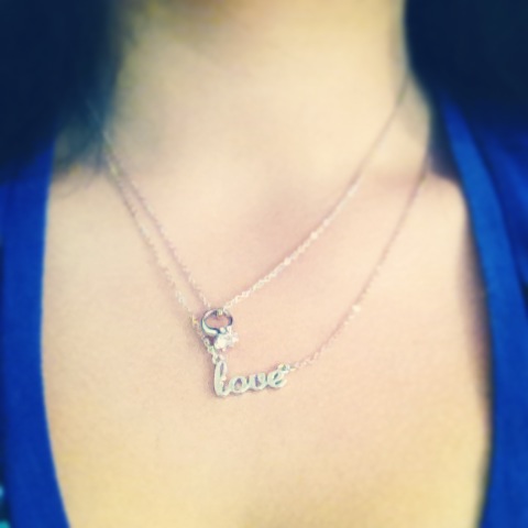 I also picked up these sweet little necklaces; a mini engagement ring and “love”.