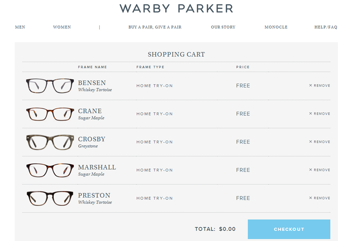 Thanks to my handy-dandy network of friends, @jperri13 and @kaylalamoriarty especially, I was advised to check out Warby Parker, most notably known for their $95 eyeglasses (price includes frames and prescriptive lenses,) and their home try-on system.