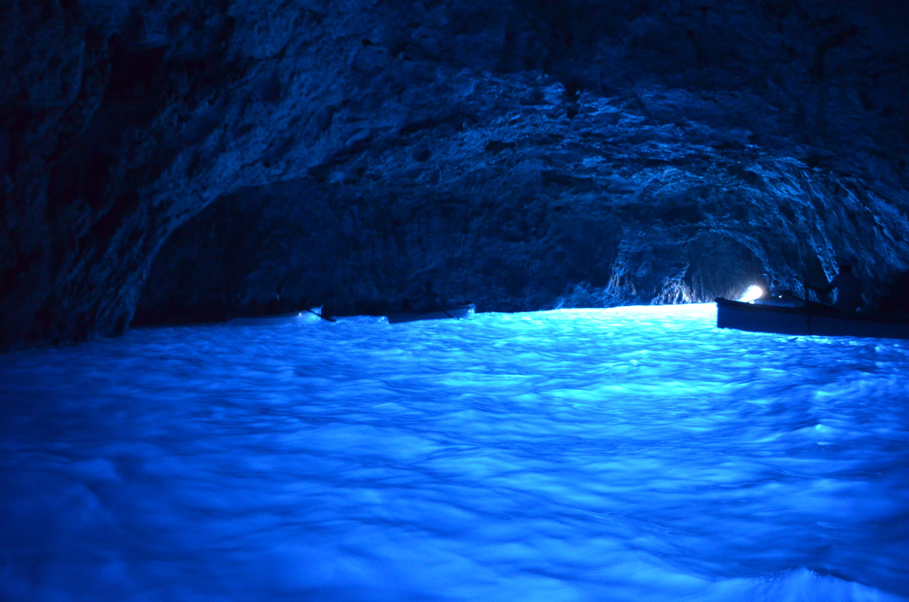 The Blue Grotto (Italian: Grotta Azzurra) is a sea cave on the coast of the island of Capri, southern Italy. Sunlight, passing through an underwater cavity and shining through the seawater, creates a blue reflection that illuminates the cavern.